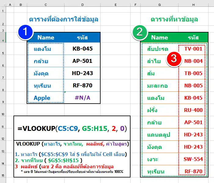 ต่อกันจาก post Excel Vlookup – Level 2 กับทริคในการดัดแปลข้อมูลเพื่อให้ใช้สูตร Vlookup ได้
