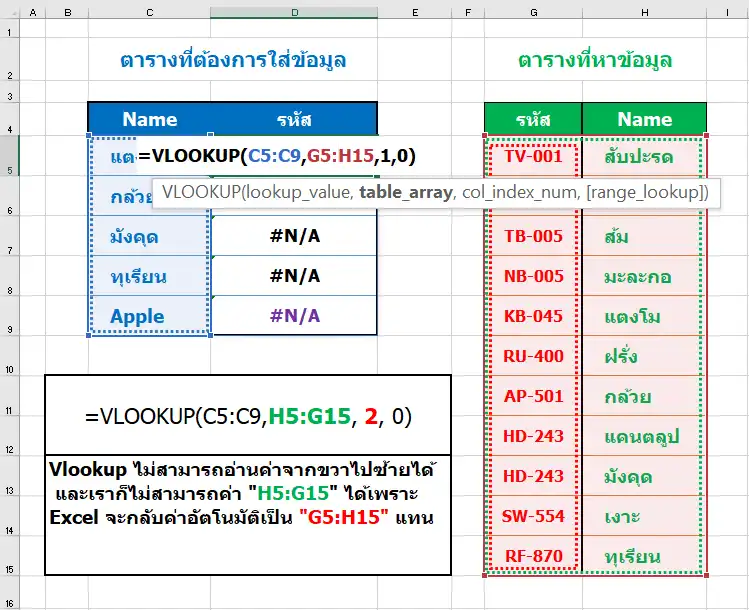 ถ้าคุณได้ใช้ Vlookup ไปสักพักจะรู้สึกว่า Vlookup ยังมีข้อจำกัดในการค้นหาข้อมูลเพื่อส่งค่ากลับมาที่รายการที่เราต้องการ คือ Vlookup สามารถค้นหาข้อมูลจากด้านขวาได้เท่านั้น แต่ไม่สามารถค้นหาข้อมูล หรือส่งกลับข้อมูลที่อยู่ทางด้านซ้ายได้